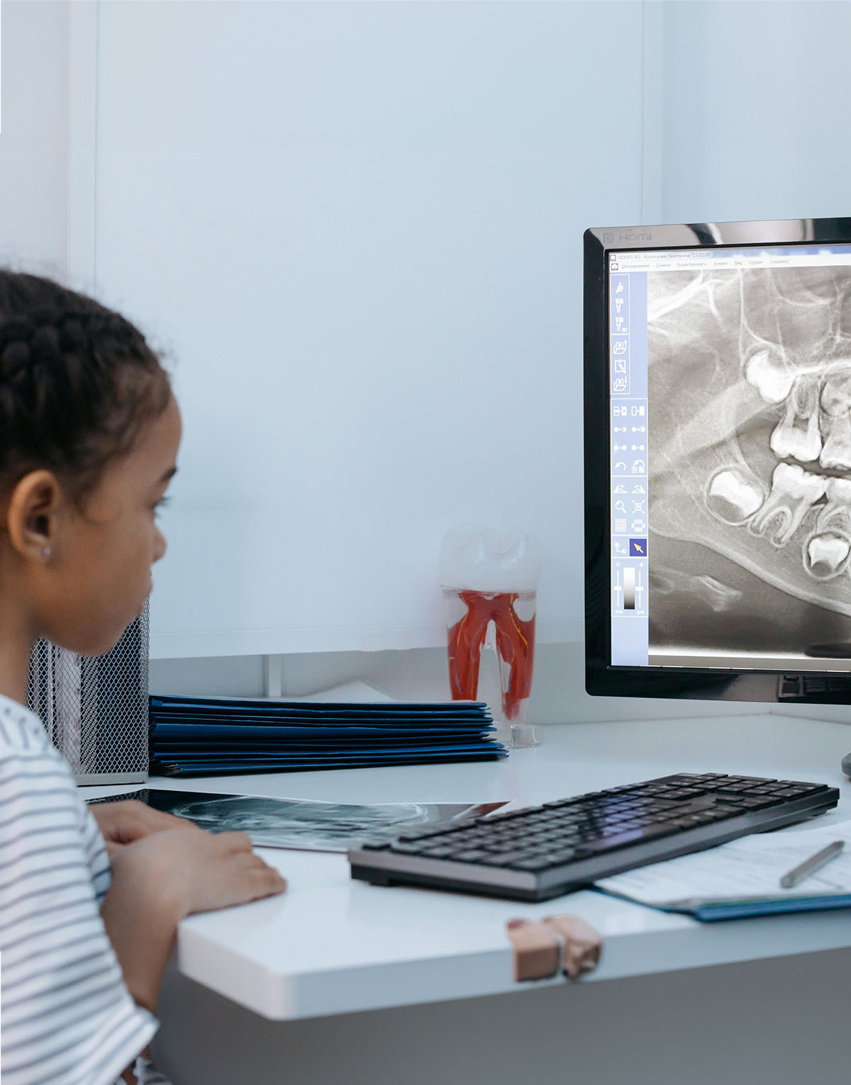 Myofunctional therapy is a non-invasive treatment that retrains the muscles of the face, mouth, and tongue to improve breathing, swallowing, and jaw function. Our myofunctional specialist assesses your facial muscles to see if there are any orofacial myofunctional disorders like mouth breathing, tongue thrusting, or low tongue posture. If needed, we develop a personalized plan of exercises to correct the issues by helping the facial muscles function correctly.